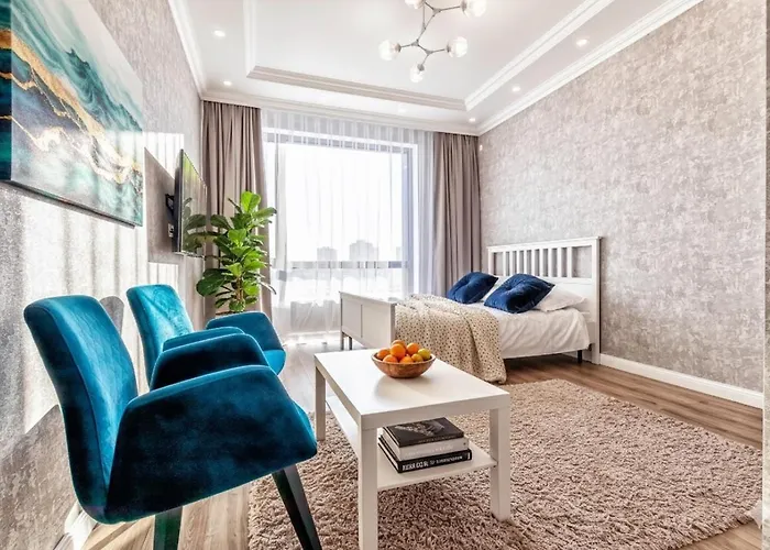 In Astana gelegen, ist das Apartment Raisson Ahotel Gt84 eine Unterkunft mit 1 Schlafzimmern und kostenlosen Parkplätzen und allergenfreien Zimmern. Khan Shatyr ist rund 800 Meter entfernt und Bajterek-Turm ist in 5 Fahrminuten erreichbar.